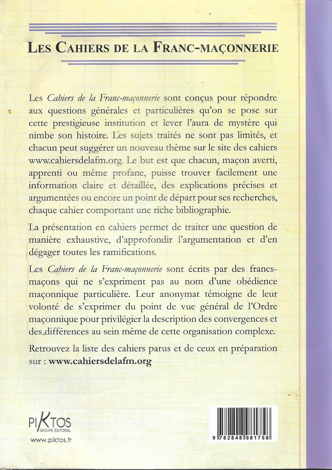 Les Cahiers de la Franc-Maçonnerie 6. Droits et devoirs du Franc-MaçonLe travail sur la pierre brute