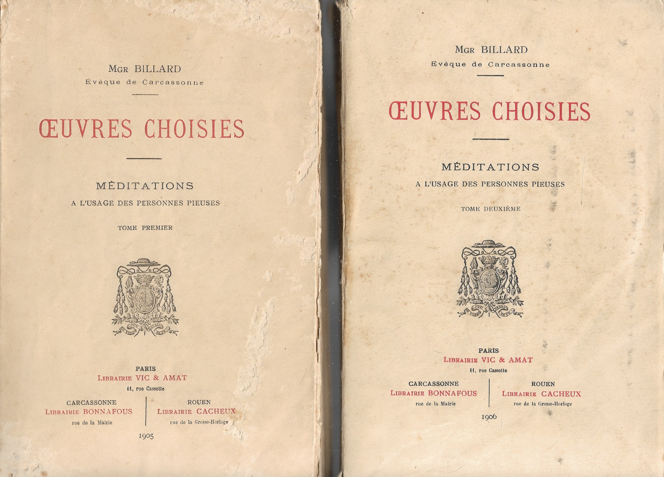 De Monseigneur Billard. Paris, Librairie Vic et Amat, 1905-1906, 476 + 508 p.