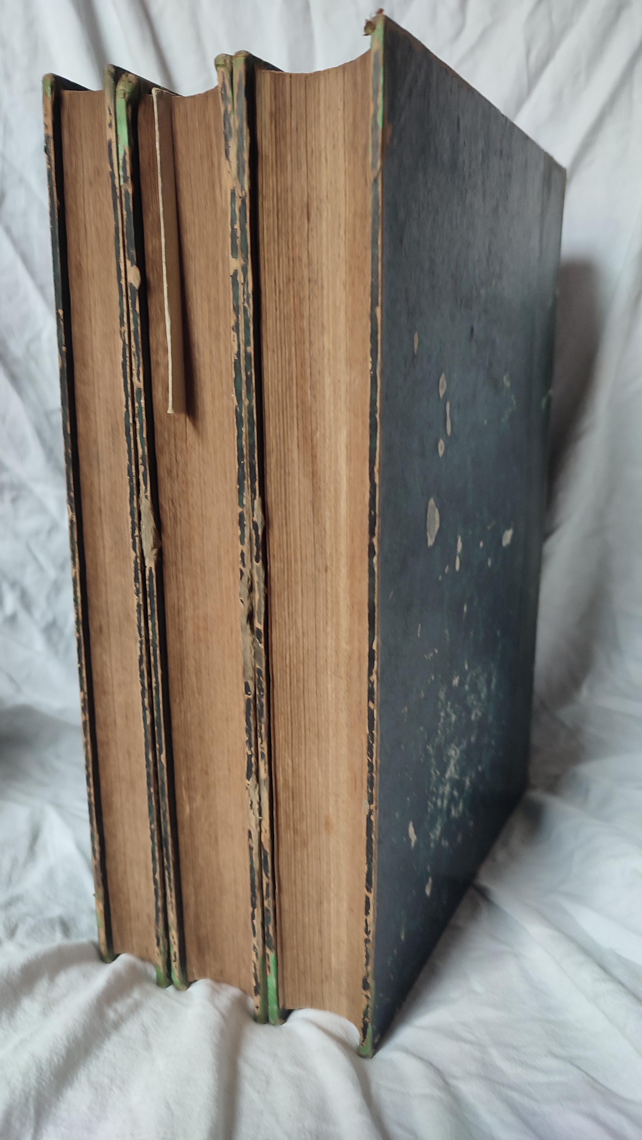 Reliures demi-cuir. Traces de frottement sur les couvertures. Rousseurs, surtout en début et en fin d'ouvrages