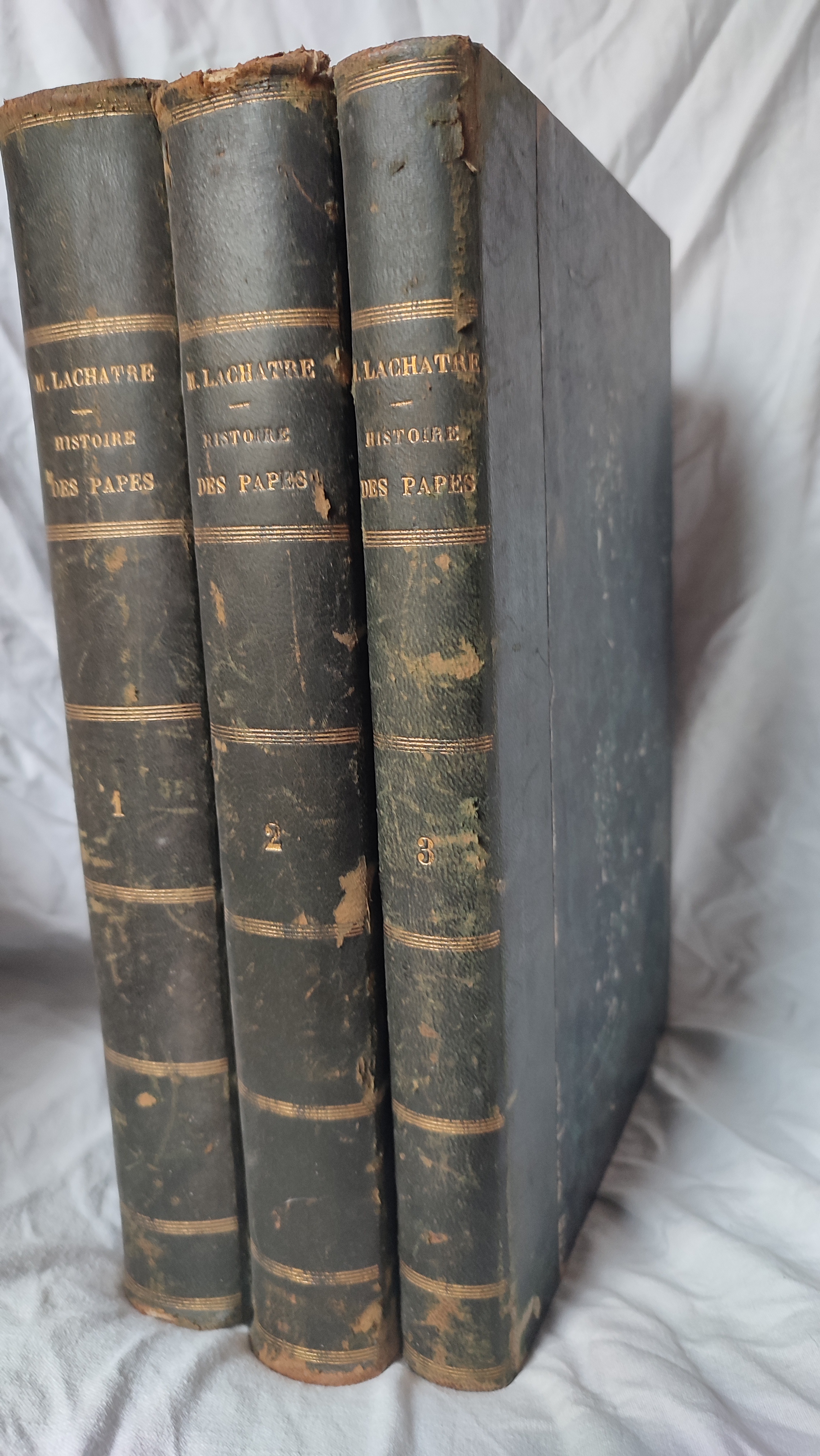 Bien complet des trois tomes sur l'Histoire des papes. Contient in fine les 80 premières pages de l'Histoire du Consulat et de l'Empire de Maurice Lachatre (Bonaparte, Napoléon Ier, Louis XVIII).