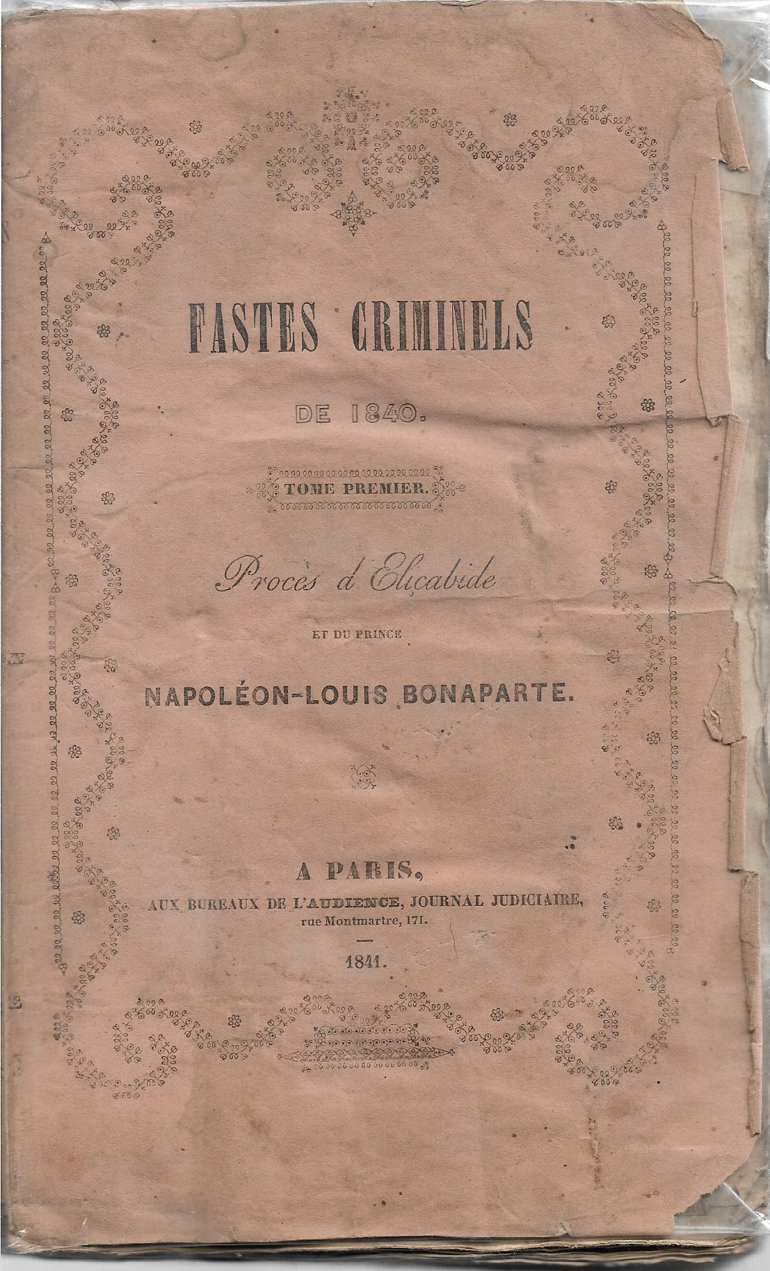 Fastes criminels de 1840 - Les procès d'Éliçabide et du Prince Napoléon-Louis Bonaparte