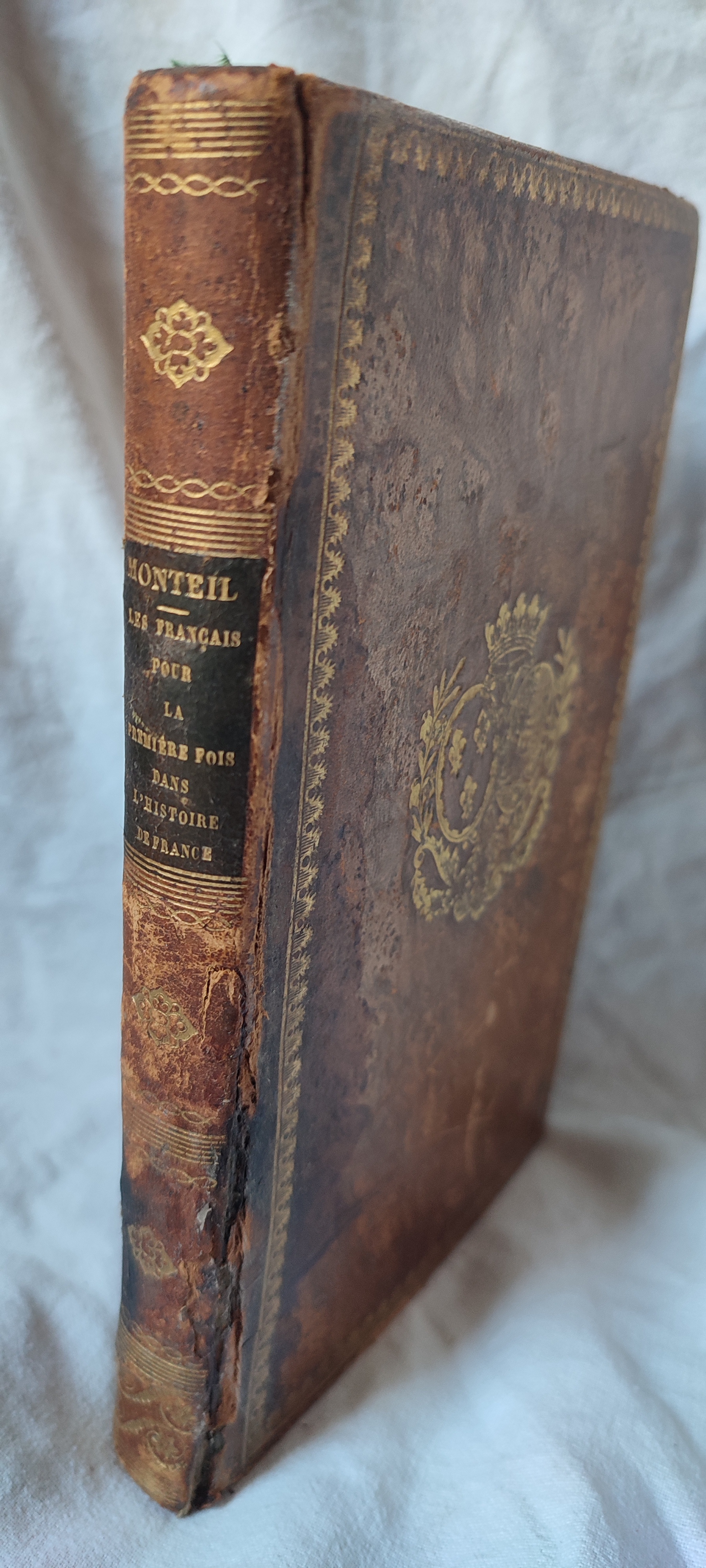 Reliure plein cuir. Mors très abîmé, fendu de bas en haut. Un coin cassé. Intérieur très bon
