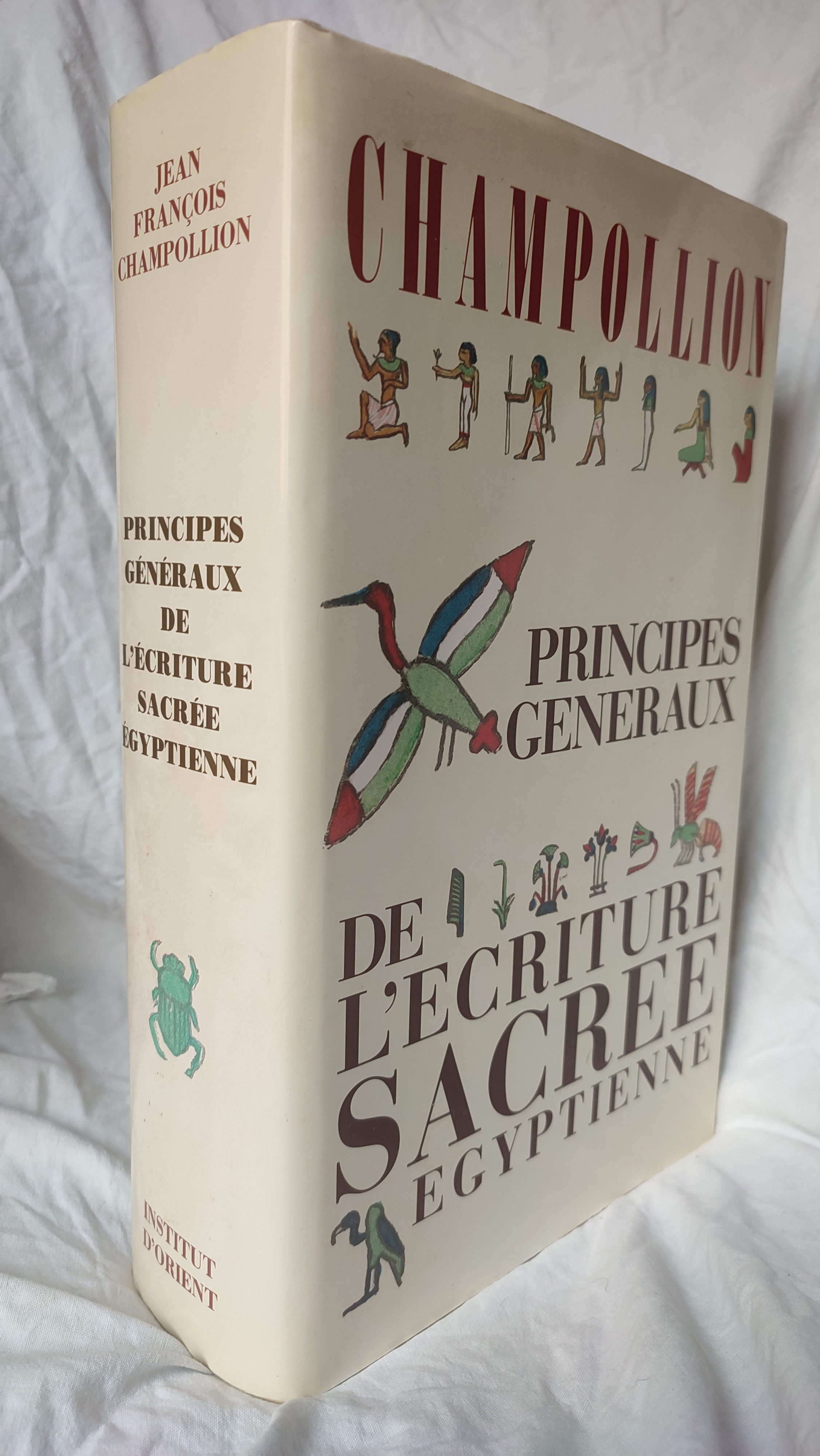 Les Principes généraux de l’écriture sacrée égyptienne présentent pour le profane la particularité d’être un très beau livre d’art. Signes d’écriture, les hiéroglyphes sont aussi le fruit de recherches esthétiques (…). Durant trois millénaires, scribes et sculpteurs peupleront les monuments et les objets voués à l’éternité de petites images alignées sagement ou entassées dans des colonnes : fabuleux grouillement de personnages figés dans des attitudes irréelles, yeux fardés vous dévisageant fixement, créatures du monde animal, monstres baroques et objets qui appartiennent autant au domaine de l’art qu’à l’épigraphie ! (…) On resterait des heures à contempler les colonnes de signes déliés ou les teintes délicate des aquarelles qui rehaussent certaines pages de cette nouvelle édition (extrait de la préface de Christiane Ziegler).