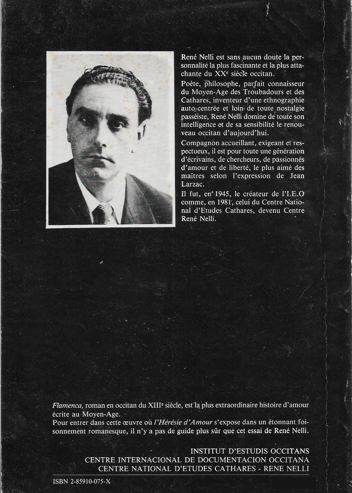 Poète, philosophe, parfait connaisseur du Moyen-Âge, des Troubadours et des Cathares, inventeur d’une ethnographie auto-centrée et loin de toute nostalgie passéiste, René Nelli domine de toute son intelligence et de sa sensibilité le renouveau occitan.