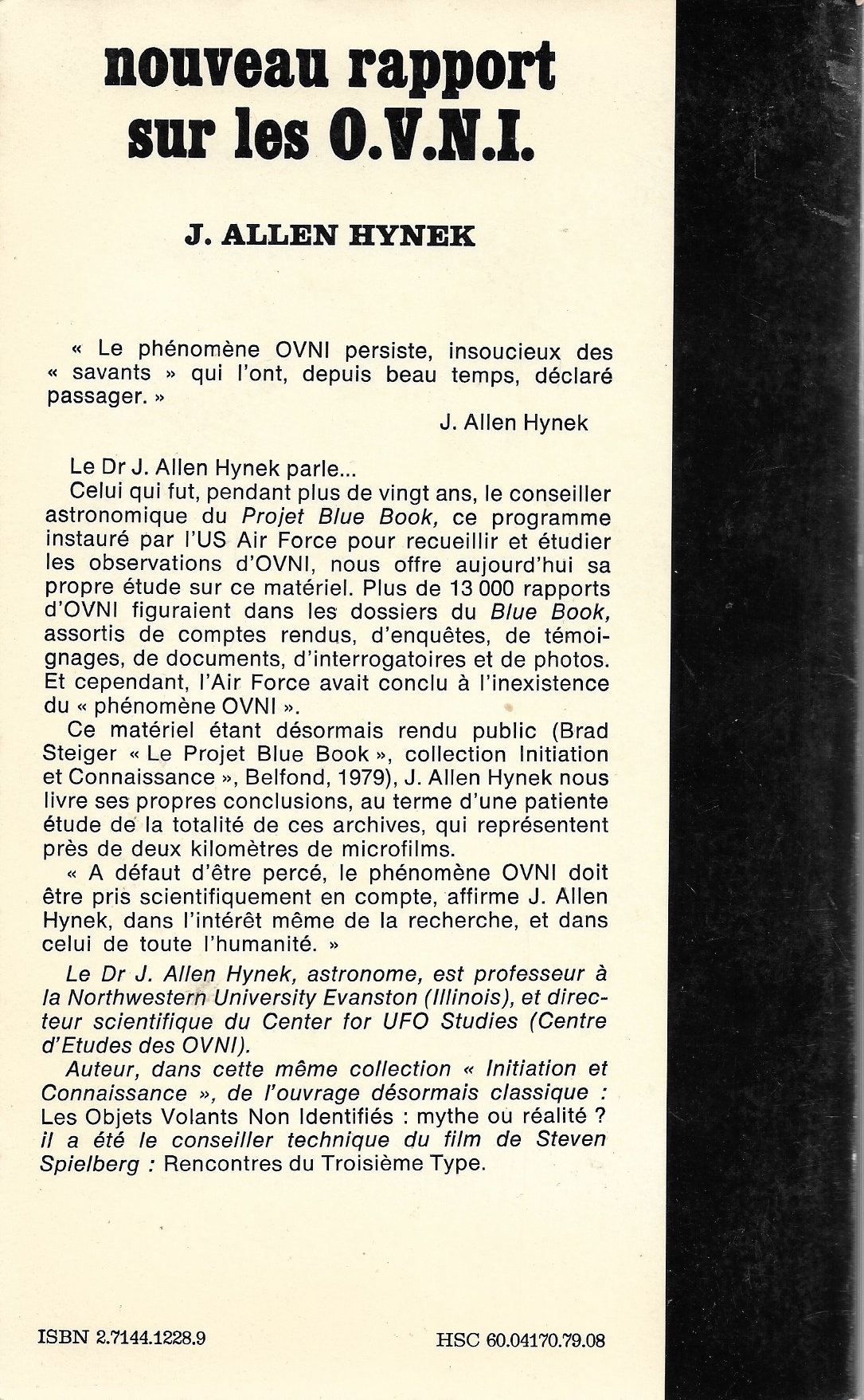 Ce matériel étant désormais rendu public, J. Allen Hynek nous livre ses propres conclusions, au terme d'une patiente étude de la totalité de ces archives, qui représentent près de deux kilomètres de microfilms.